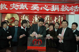 為積極響應(yīng)市委、市政府號(hào)召,發(fā)揚(yáng)匯源集團(tuán)“充滿愛心、勇?lián)?zé)任”優(yōu)良傳統(tǒng), 2008年2月4日上午,在賴運(yùn)宏董事長的關(guān)心下,匯源集團(tuán)向全體員工發(fā)出了《抗雪救災(zāi)送溫暖獻(xiàn)愛心倡議書》。全體匯源員工熱情高漲,展開了以“踴躍捐款、愛心大融冰”為主題的抗雪救災(zāi)、送溫暖獻(xiàn)愛心捐款活動(dòng)。到11時(shí)30分,共捐得善款15221元,并于上午及時(shí)送到了市慈善總會(huì)。充分體現(xiàn)了匯源員工“關(guān)愛社會(huì),奉獻(xiàn)愛心”的企業(yè)文化,為仍滯留在車站或旅途中的受困群眾以及受災(zāi)的群眾獻(xiàn)上了一份關(guān)愛與真情。